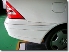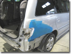 お客様からなるべく安く仕上げて欲しいとご要望があり、バンパはリサイクルパーツを使用して、リヤーフェンダーを鈑金塗装することになりました。 |