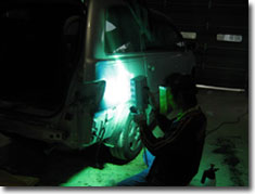 慎重に損傷部分をはずし塗装の準備をします。 |
