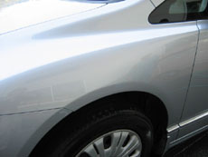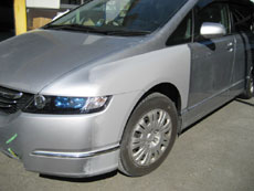 この車は接触事故により、運転席後部についたキズを塗装をすることに。 |